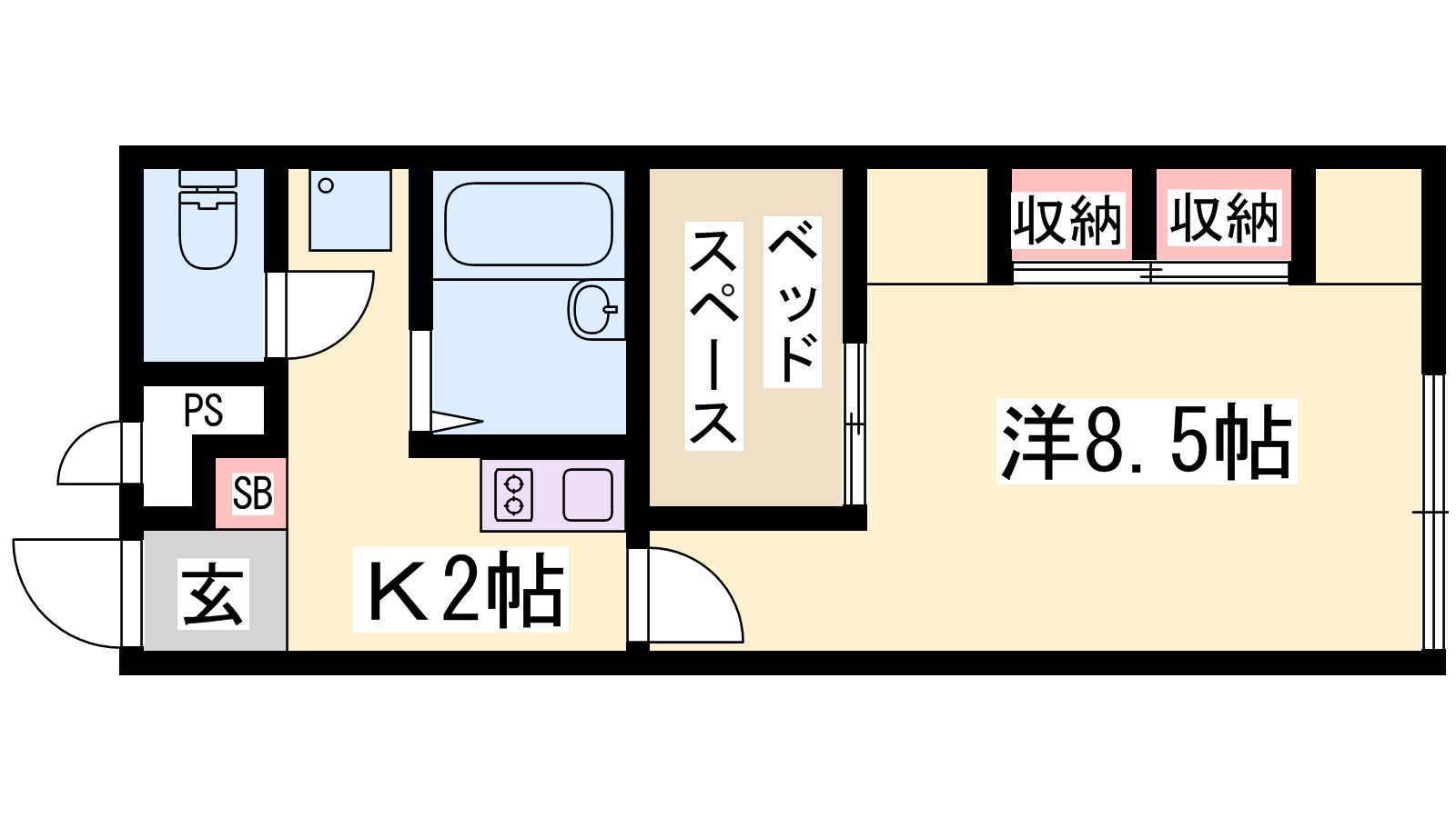 - K2帖、洋室8.5帖