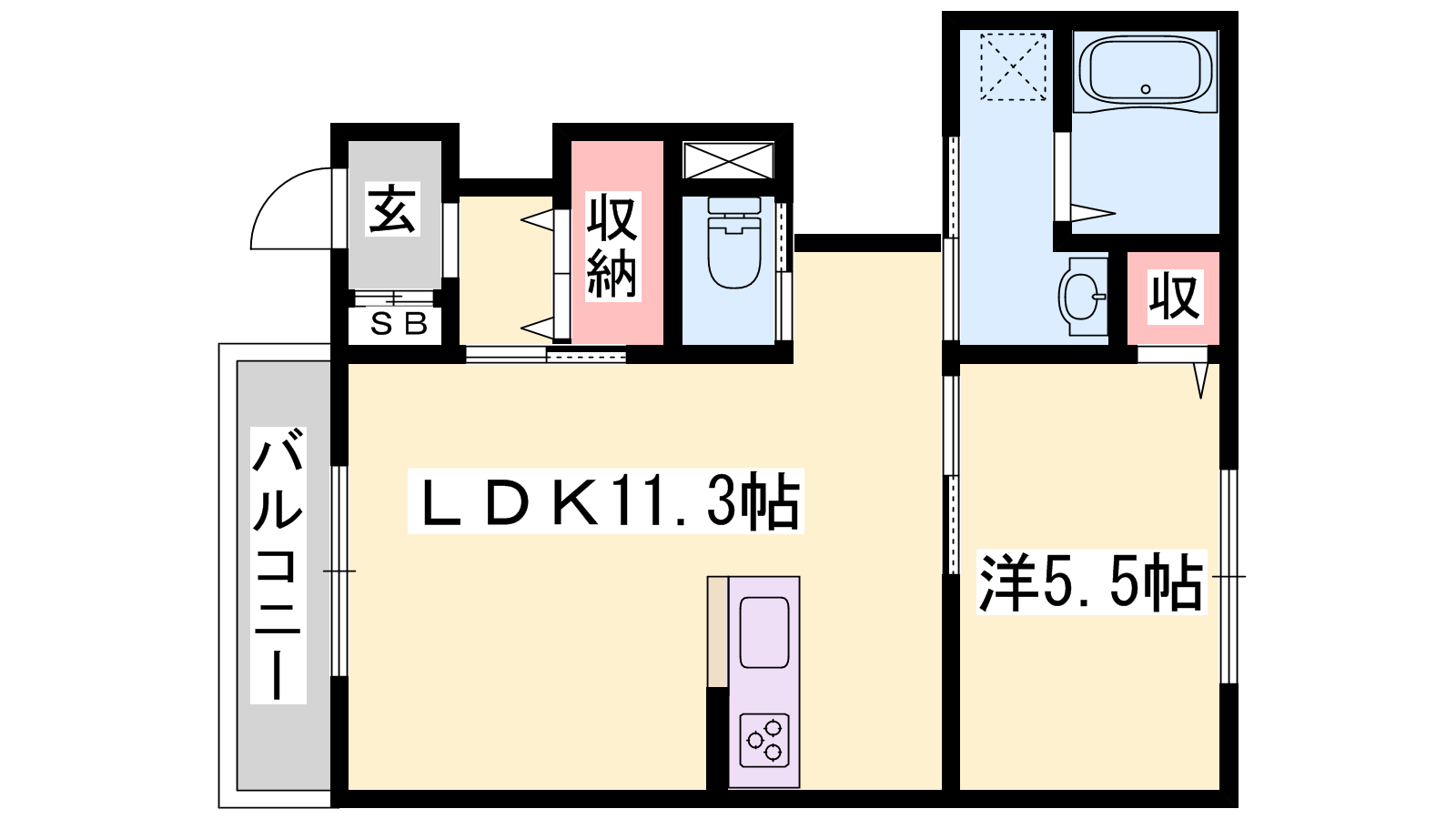 - LDK11.3帖、洋室5.5帖