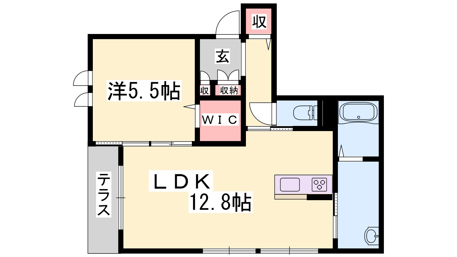 - LDK12.8帖、洋室5.5帖