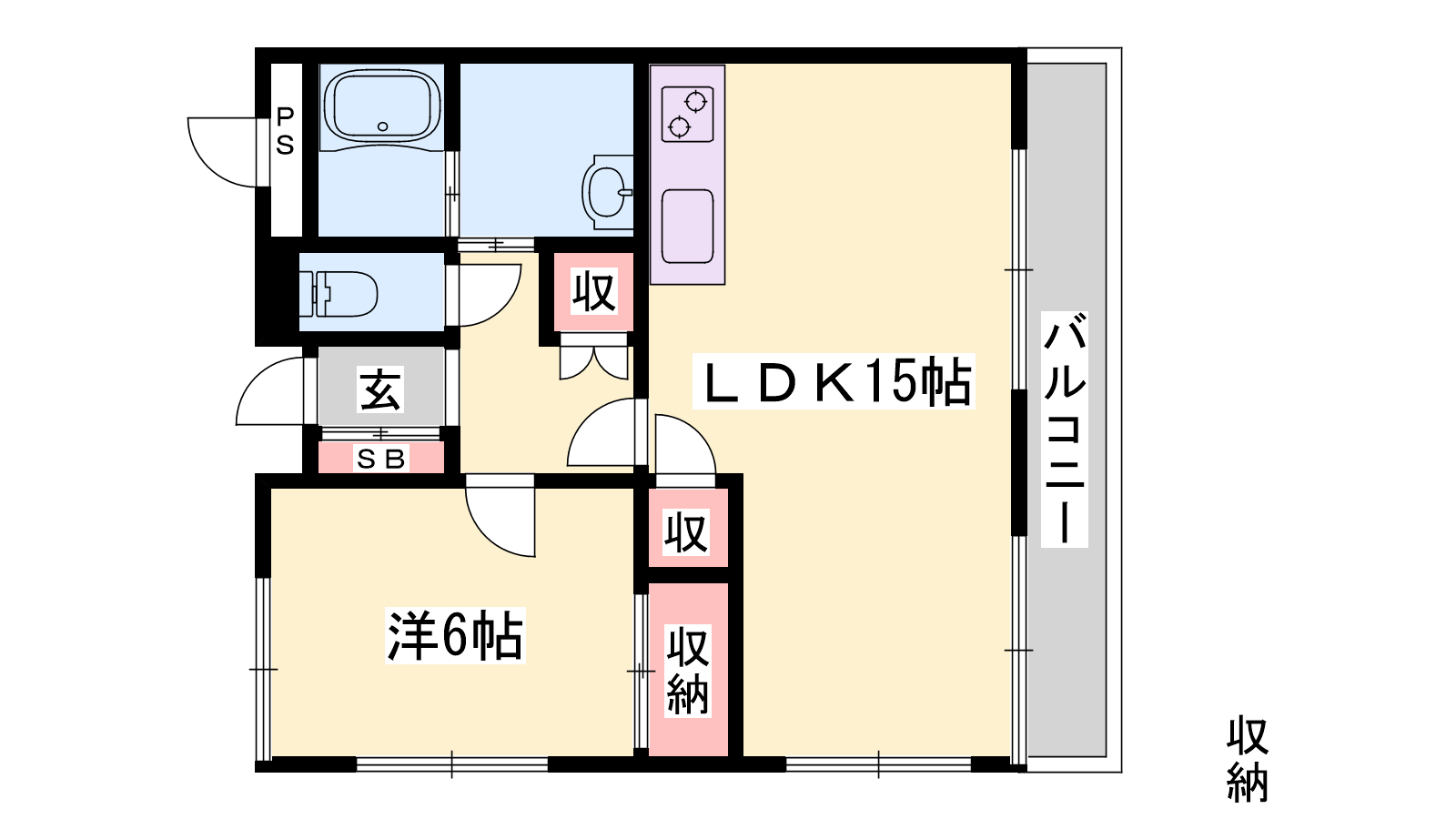 - LDK15帖、洋室6帖