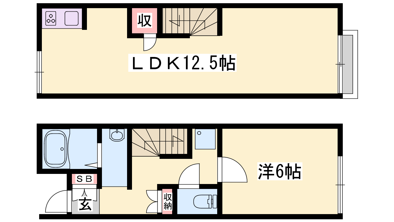- LDK12.5帖、洋室6帖