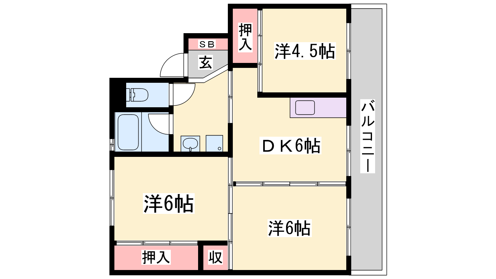 - DK6帖、洋室6帖、洋室6帖、洋室4.5帖