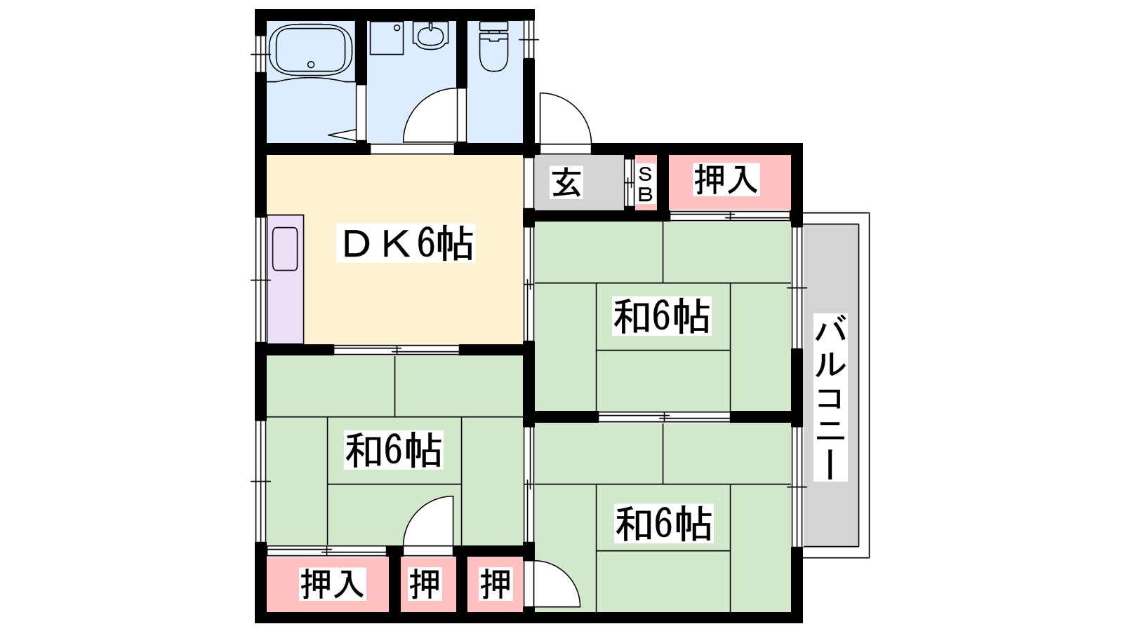 - DK6帖、和室6帖、和室6帖、和室6帖