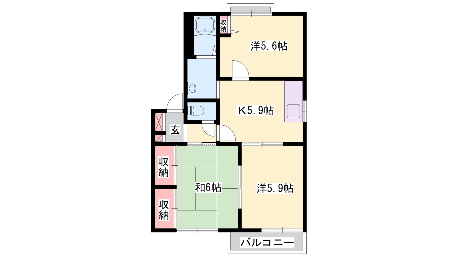 - K5.9帖、洋室5.9帖、洋室5.6帖、洋室6帖