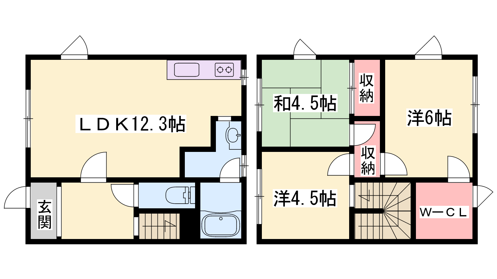 - LDK12.3帖、洋室6帖、洋室4.5帖、和室4.5帖
