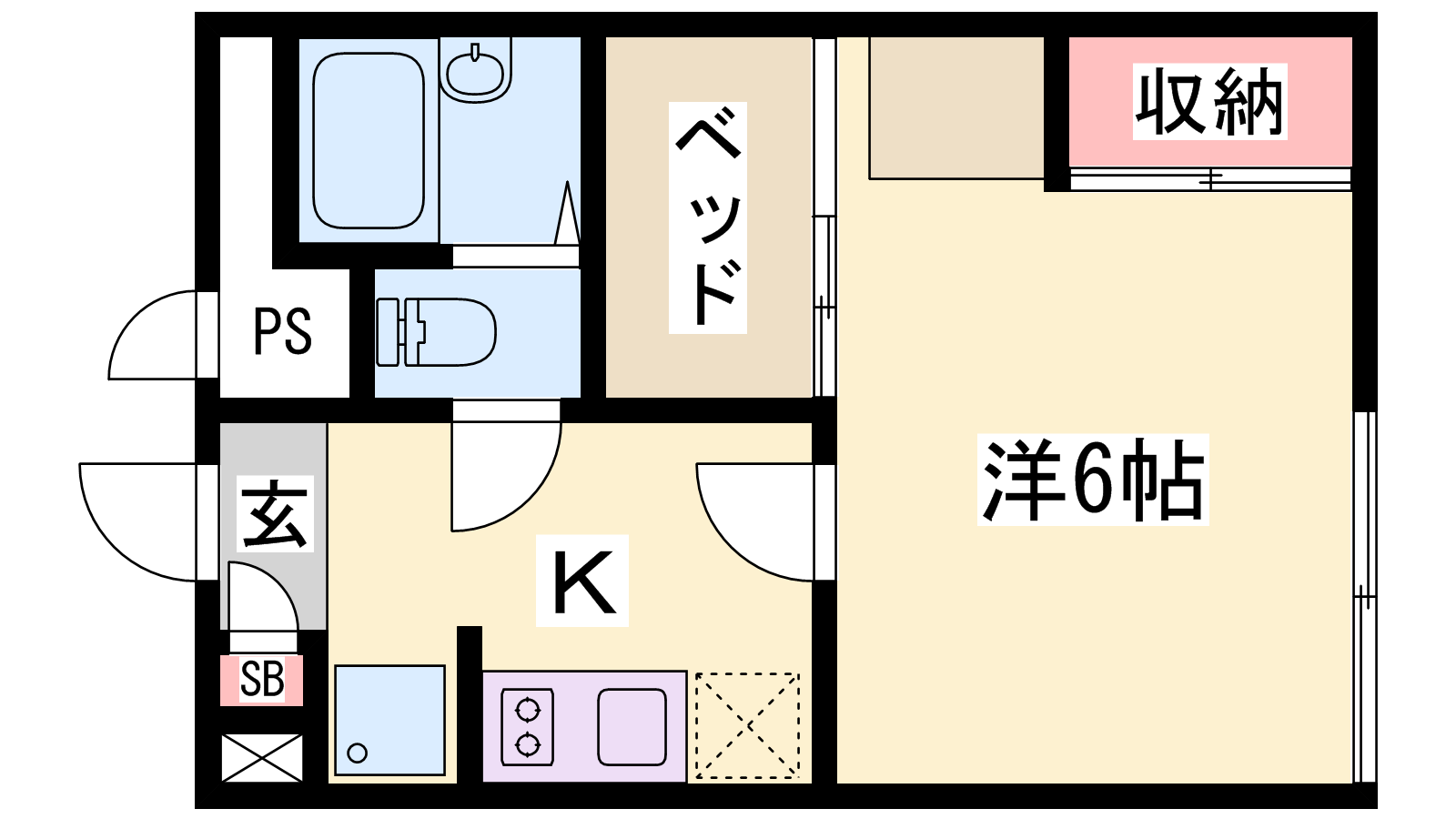 - K2帖、洋室6帖