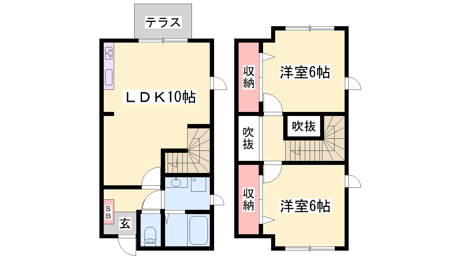 - LDK10帖、洋室6帖、洋室6帖