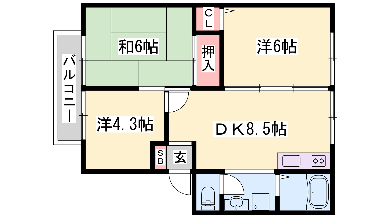 - DK8.5帖、洋室6帖、和室4.3帖、和室6帖