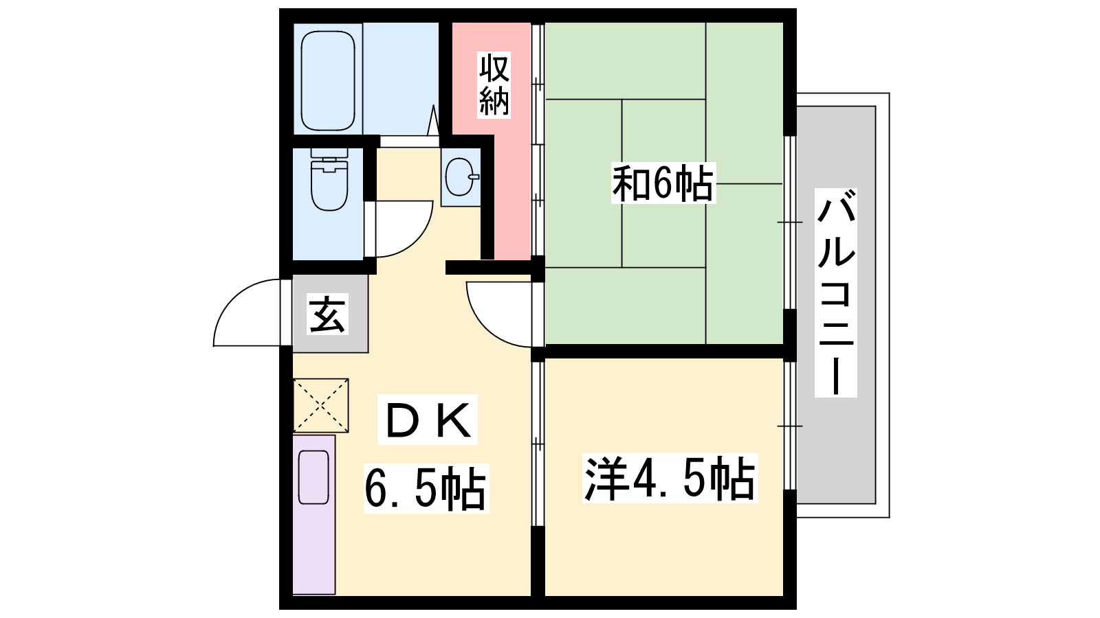 - DK6.5帖、和室6帖、洋室4.5帖