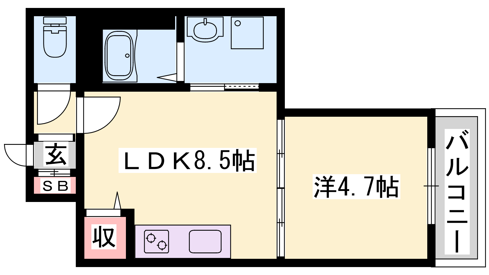- LDK8.5帖、洋室4.7帖