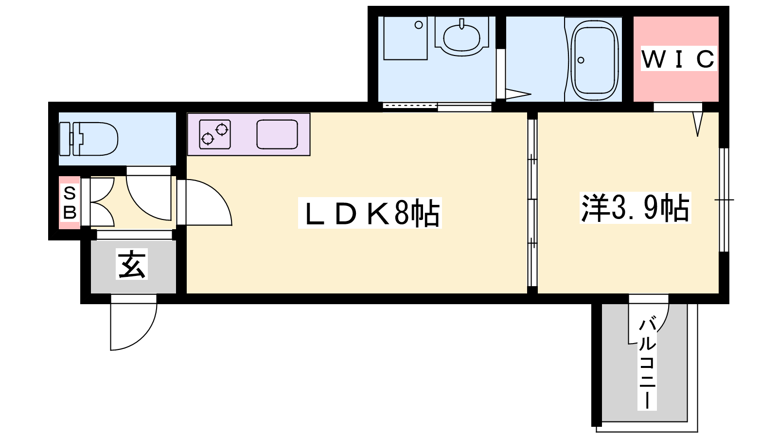 - LDK8帖、洋室3.9帖