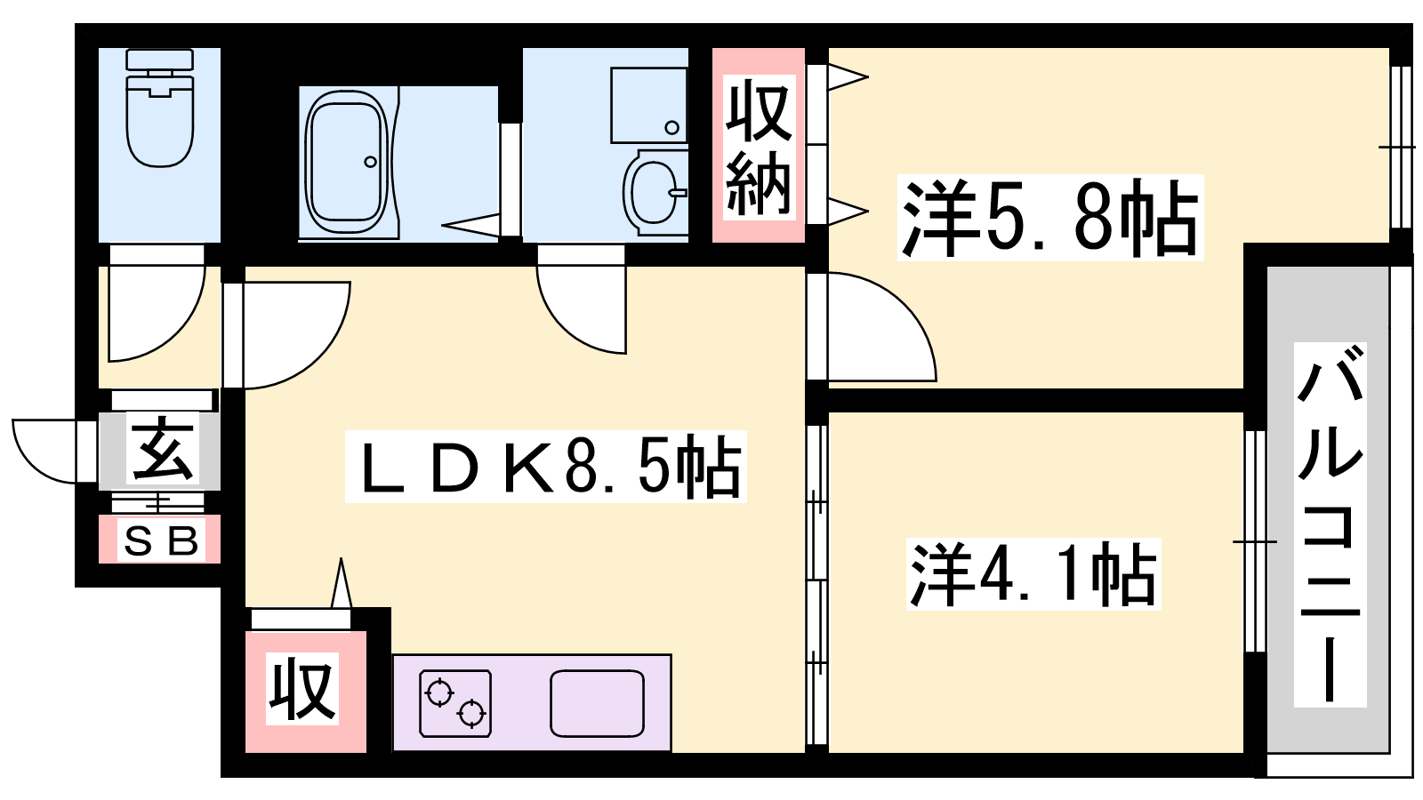 - LDK8.5帖、洋室4.1帖、洋室5.8帖