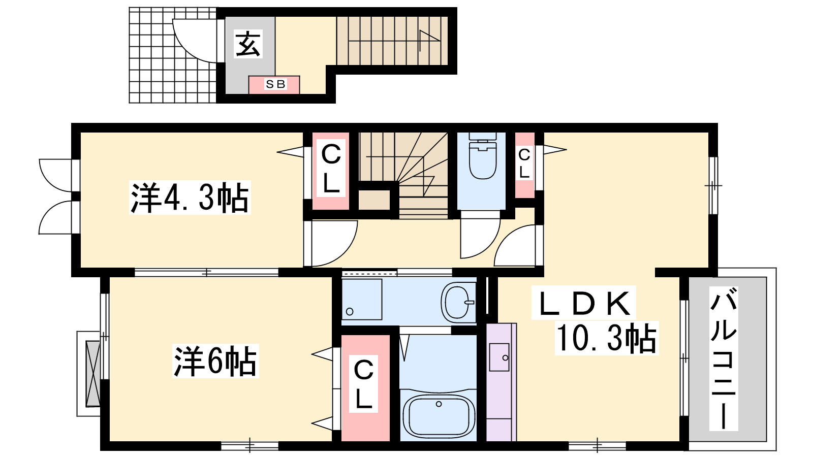 - LDK10.3帖、洋室6帖、洋室4.3帖