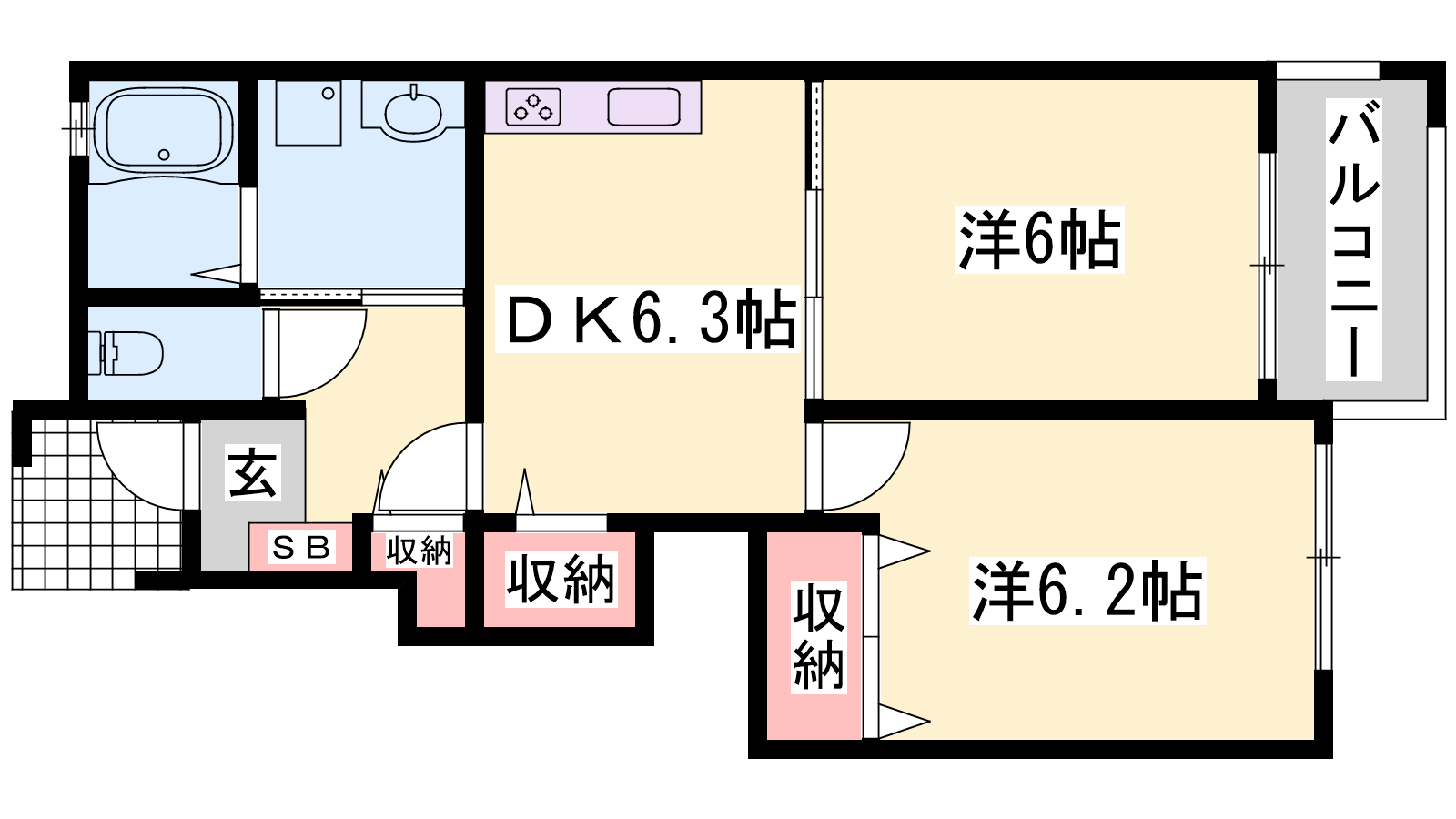 - DK6帖、洋室6帖、洋室6帖