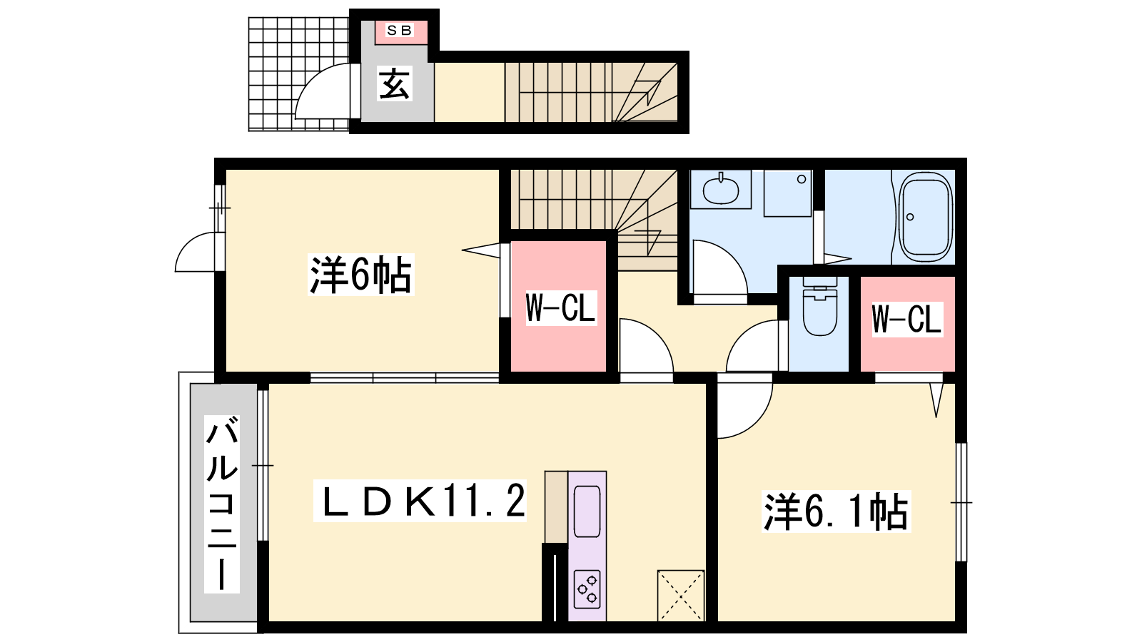 - LDK11.2帖、洋室6.1帖、洋室6帖