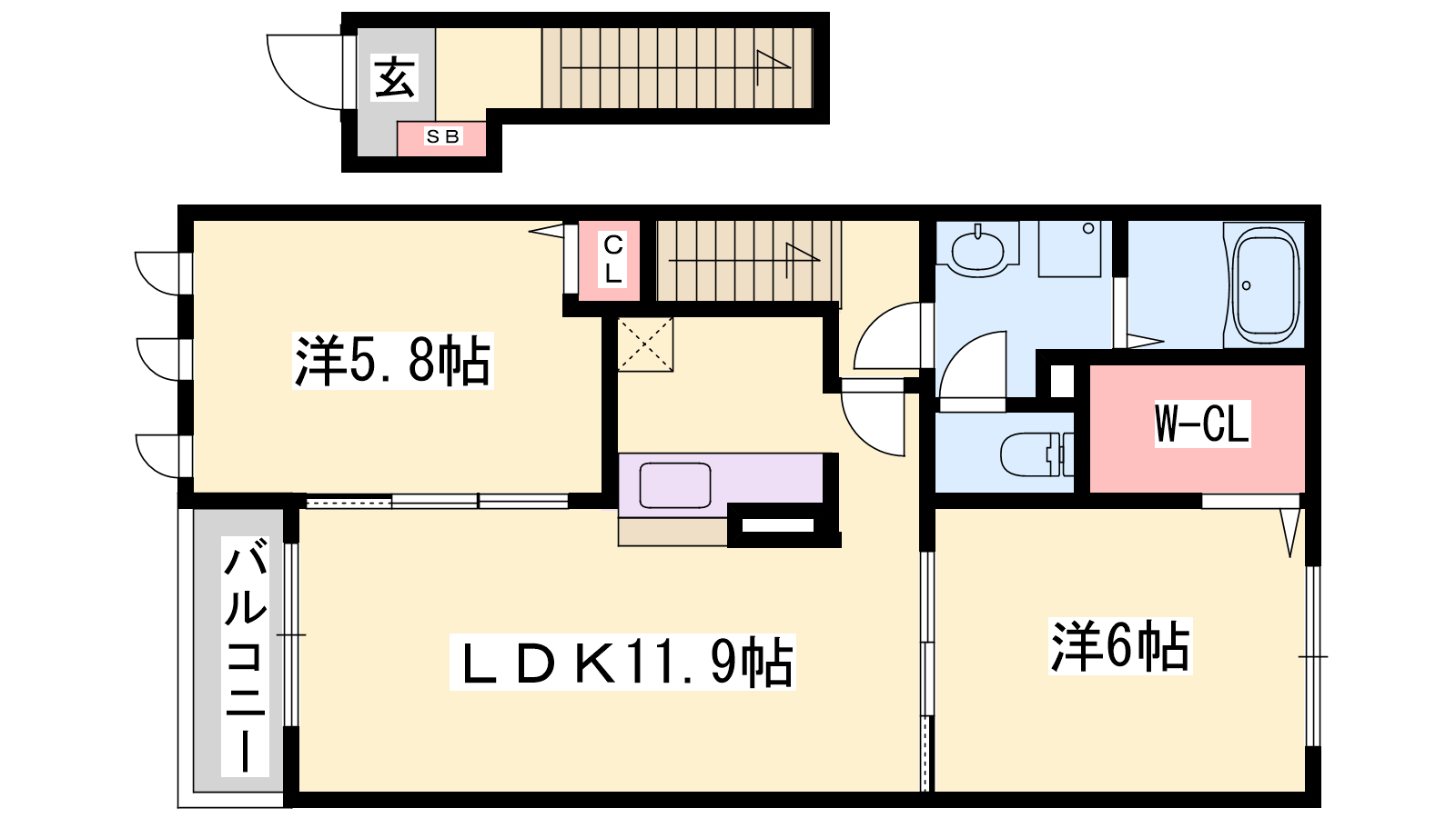 - LDK11.9帖、洋室6帖、洋室5.8帖