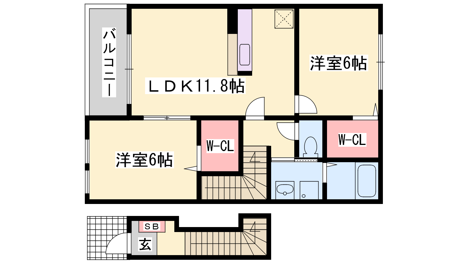- LDK11.8帖、洋室6帖、洋室6帖