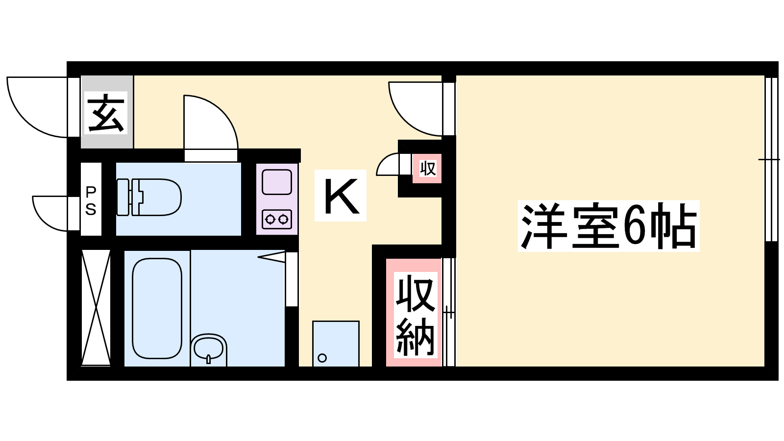 - K2帖、洋室6帖