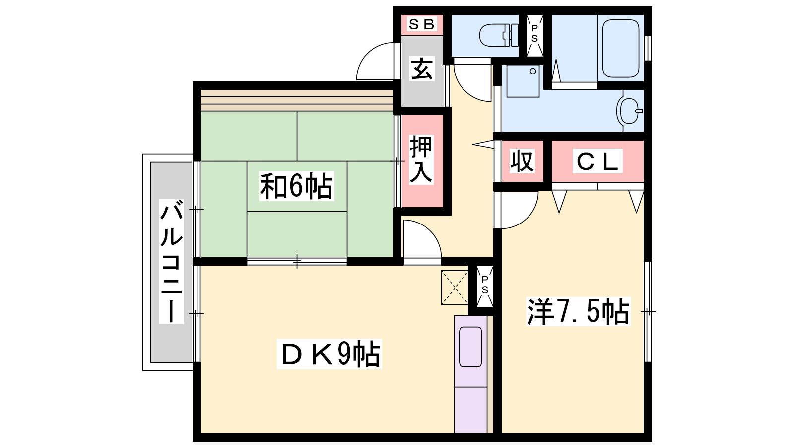 - DK9帖、洋室7.5帖、和室7帖