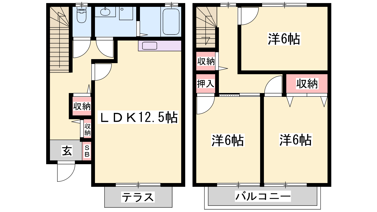 - LDK12.5帖、洋室6帖、洋室6帖、洋室6帖