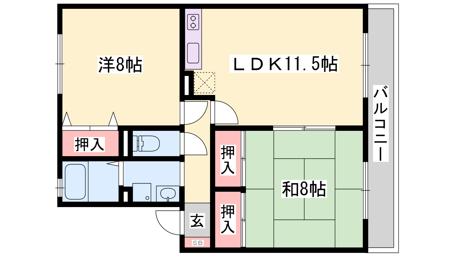 - LDK11.5帖、洋室8帖、和室8帖