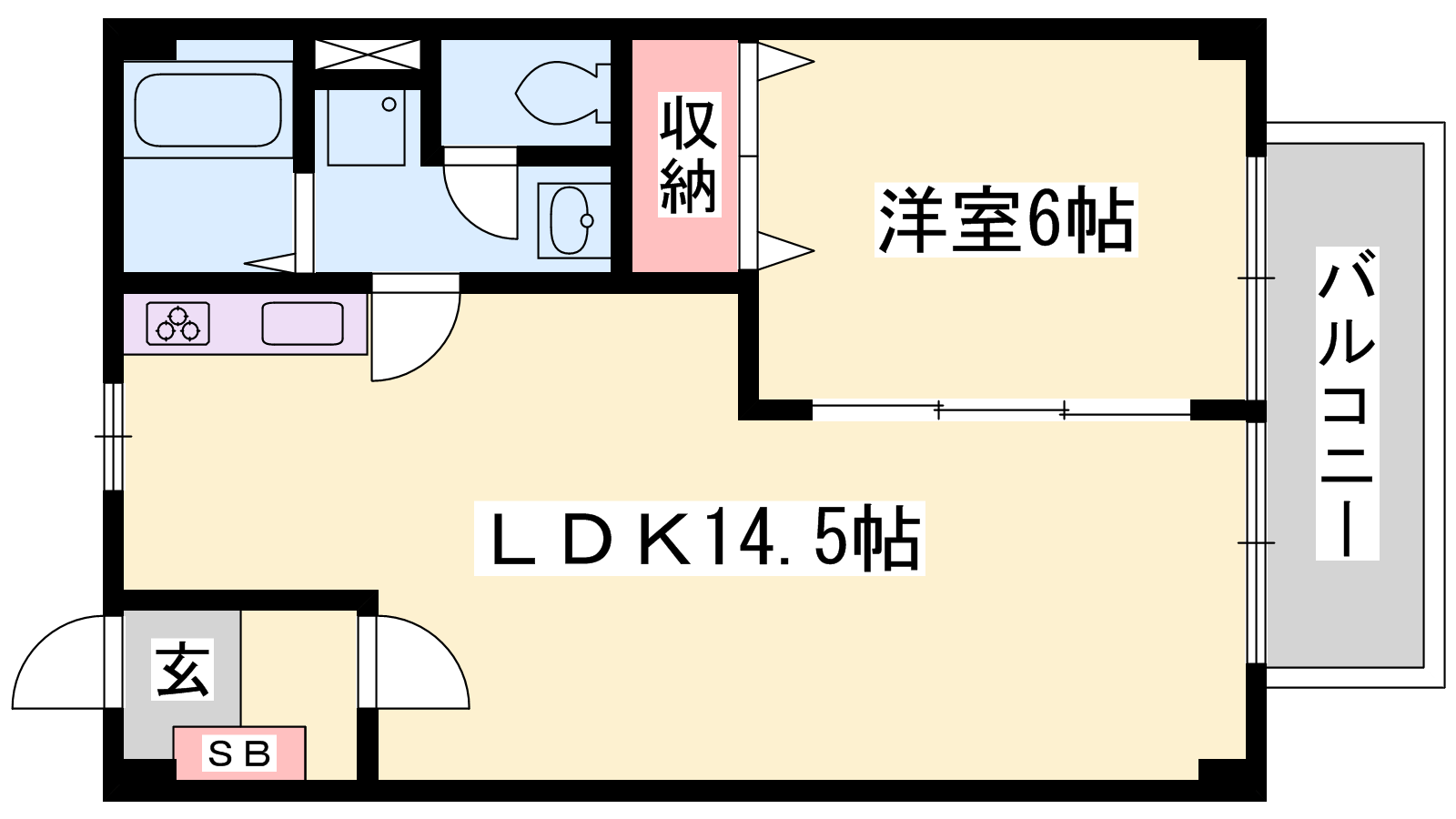- LDK14.5帖、洋室6帖