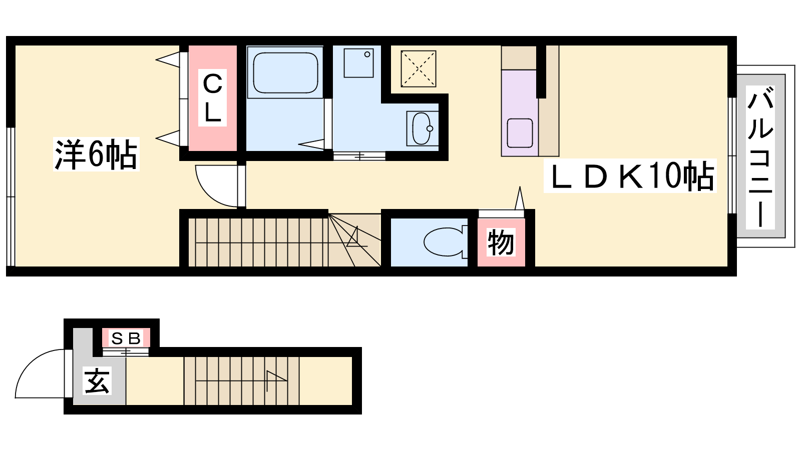 - LDK10帖、洋室6帖