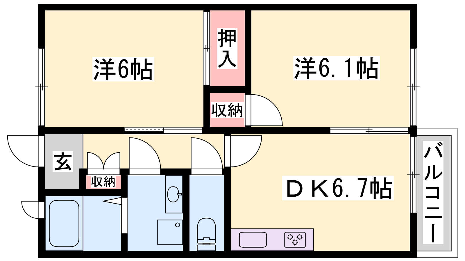 - DK6.7帖、洋室6.1帖、洋室6帖