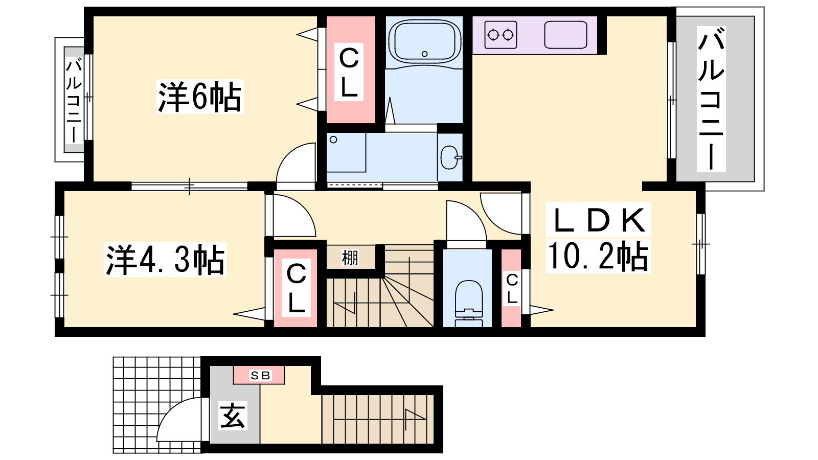 - LDK10.2帖、洋室6帖、洋室4.3帖