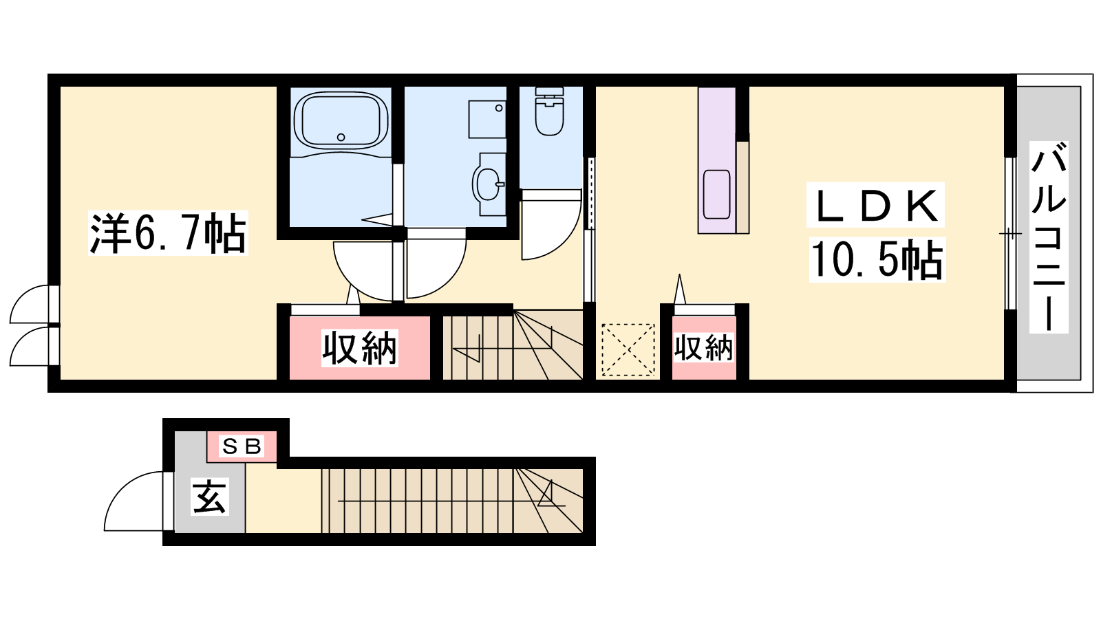 - LDK10.5帖、洋室6.7帖