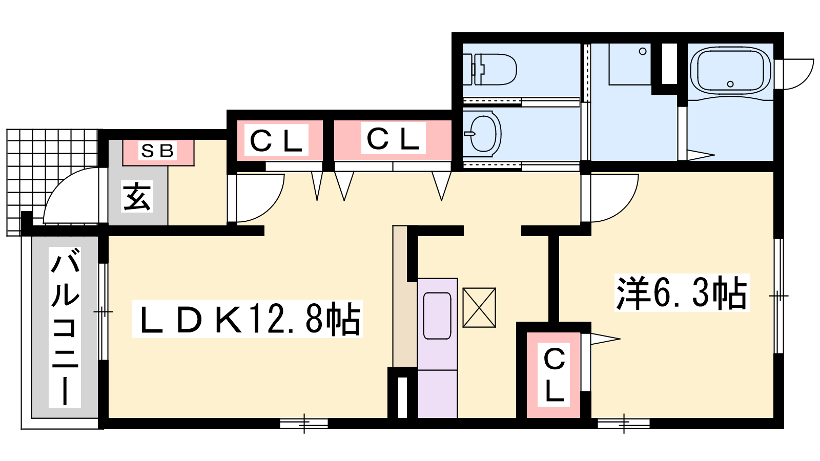 - LDK12.8帖、洋室6.3帖