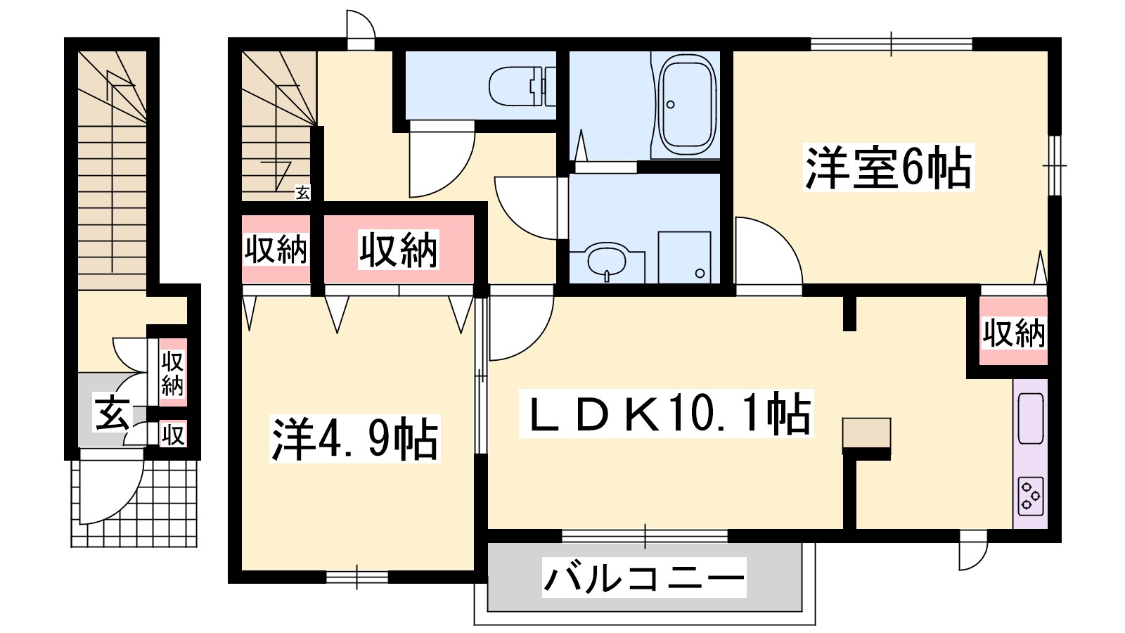 - LDK10.1帖、洋室6帖、洋室4.9帖