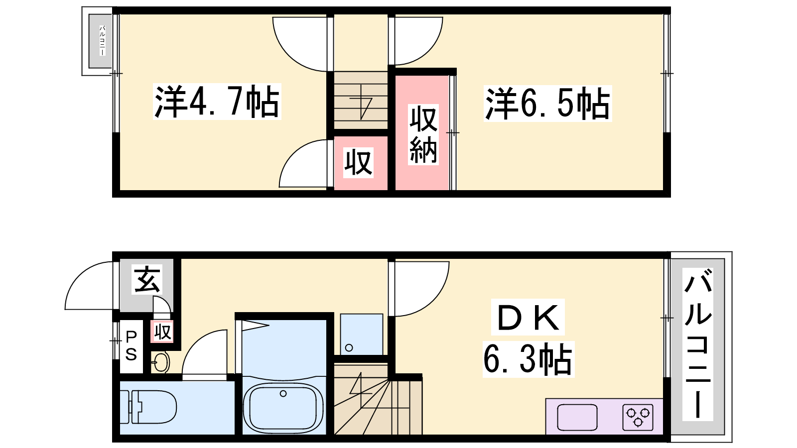 - DK6.3帖、洋室6.5帖、洋室4.7帖