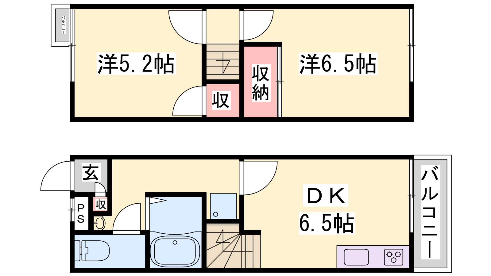 - DK7帖、洋室5.2帖、洋室6帖