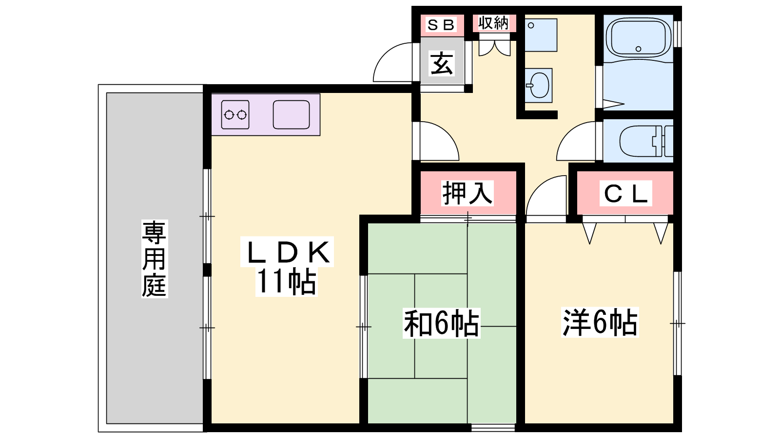 - LDK11帖、洋室6帖、和室6帖
