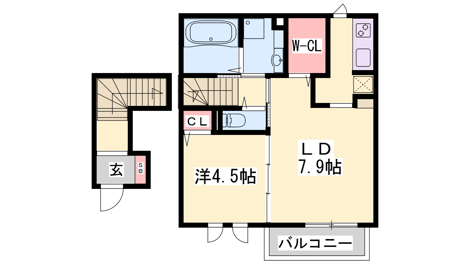 - LDK7.9帖、洋室4.5帖