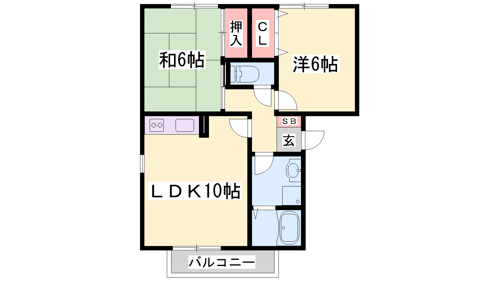 - LDK10帖、洋室6帖、和室6帖