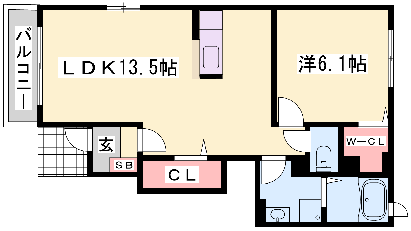 - LDK13.5帖、洋室6.1帖