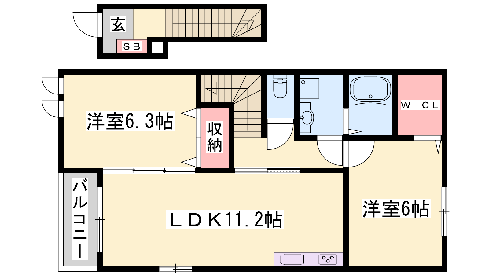 - LDK11.2帖、洋室6.3帖、洋室6帖