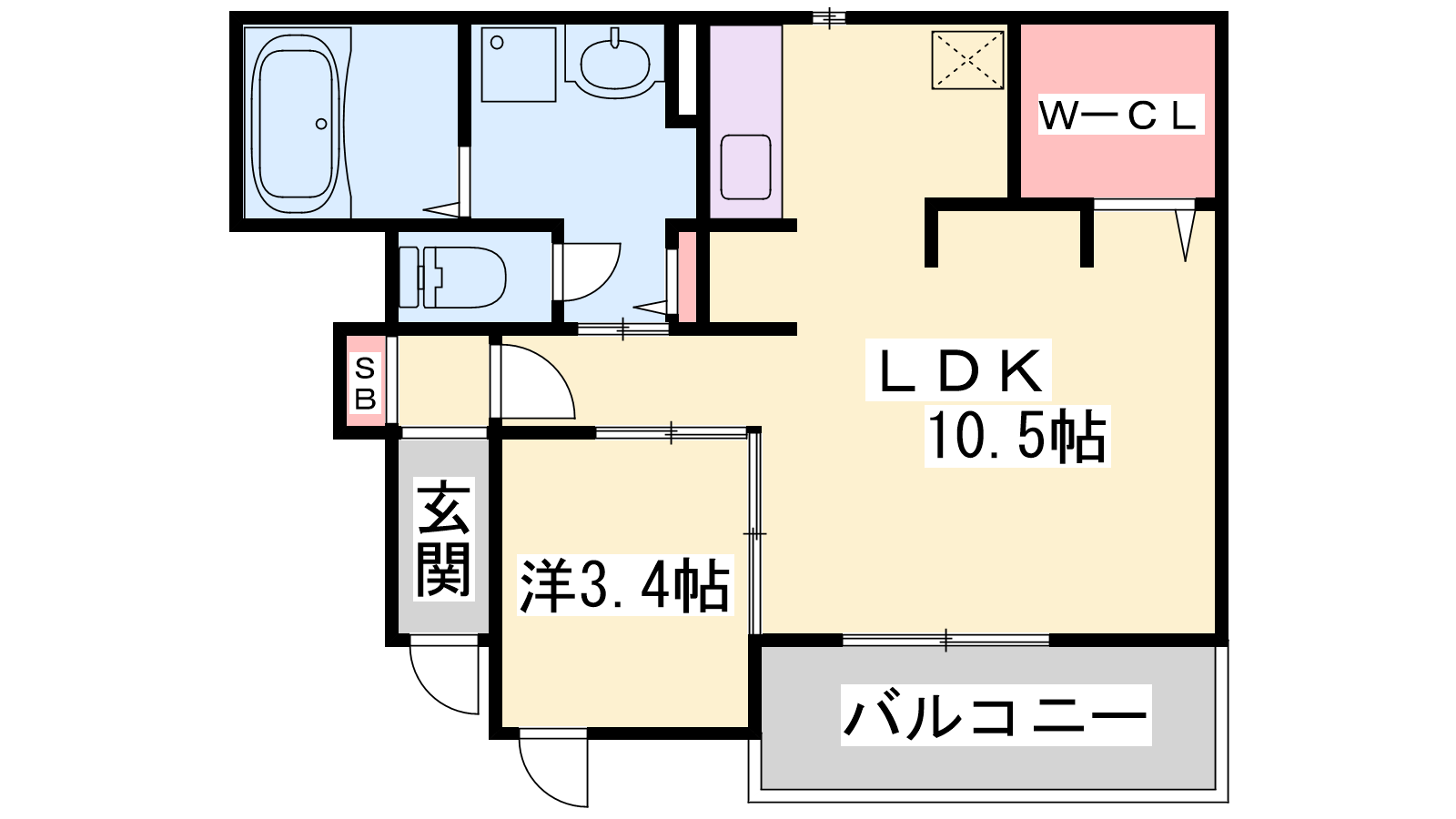- LDK10.5帖、洋室3.4帖