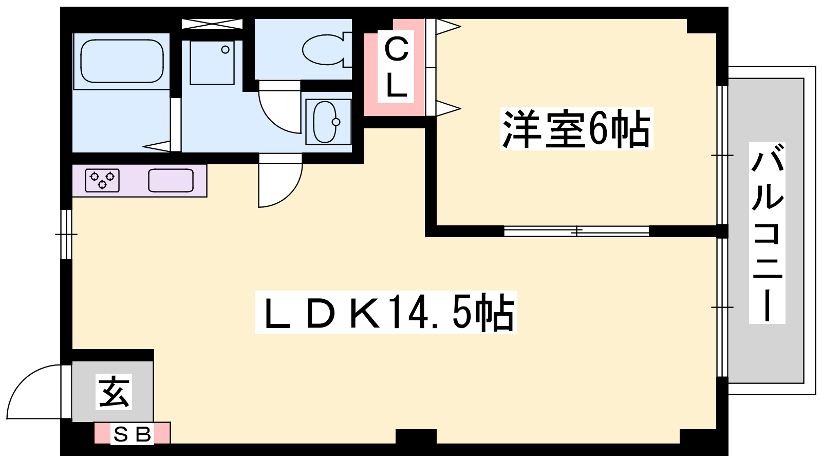 - LDK14.5帖、洋室6帖