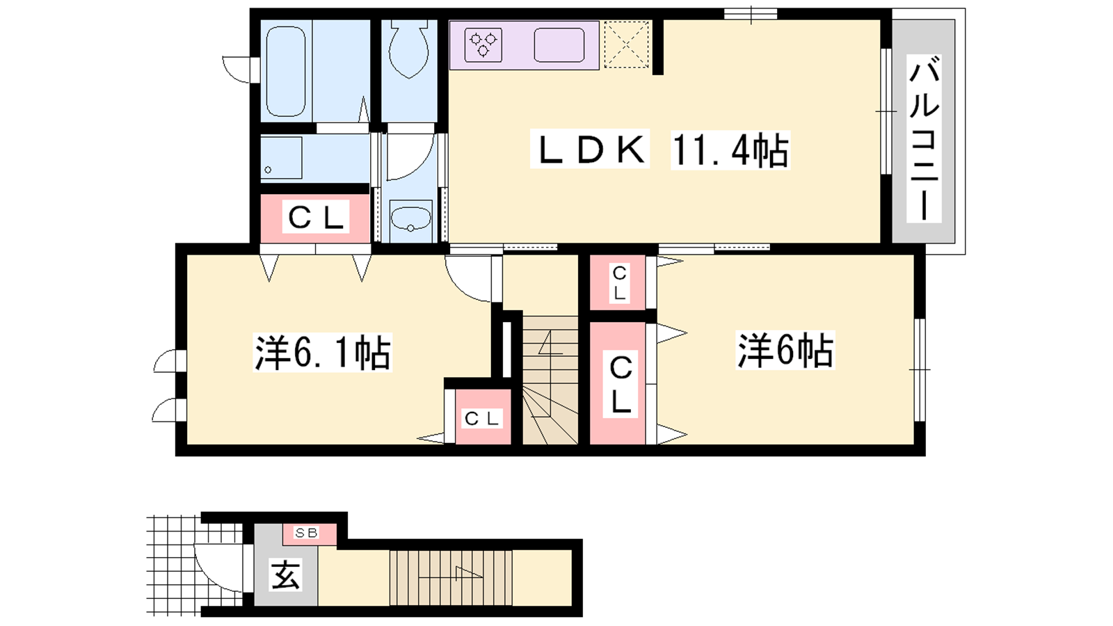 - LDK11.4帖、洋室6帖、洋室6.1帖