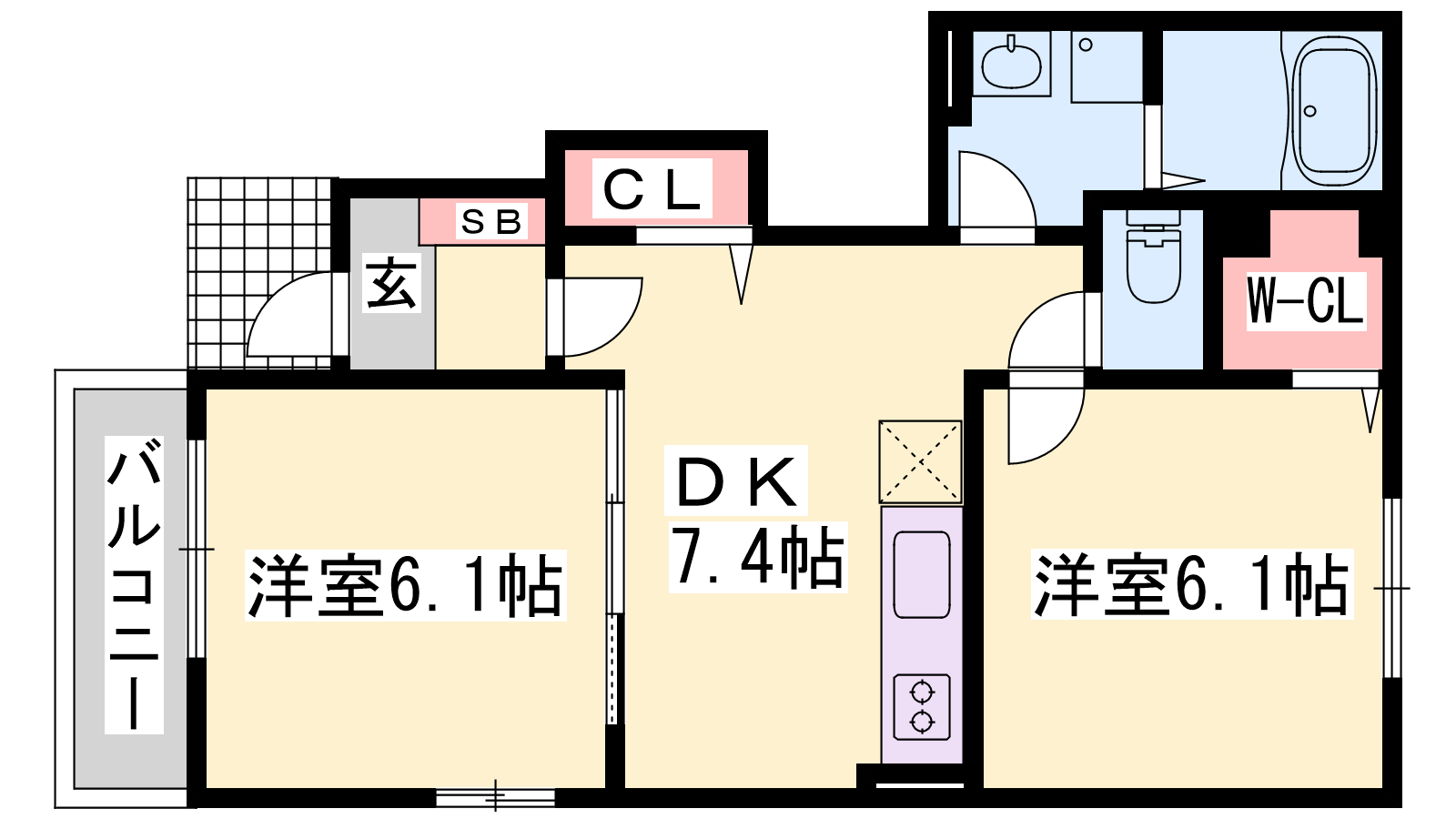 - DK7.4帖、洋室6.1帖、洋室6.1帖