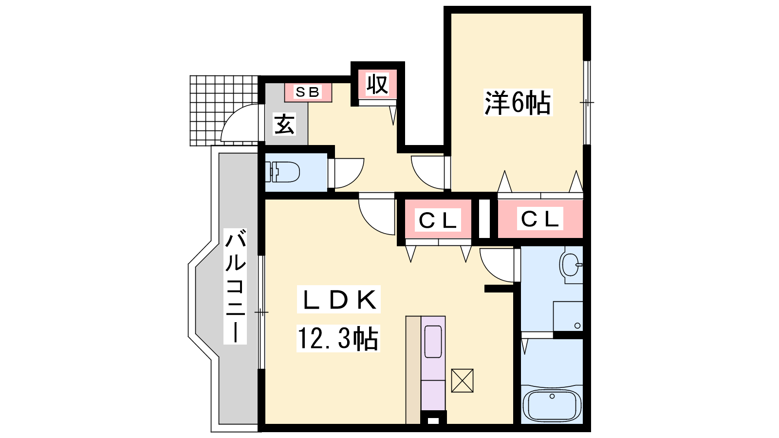 - LDK12.3帖、洋室6帖