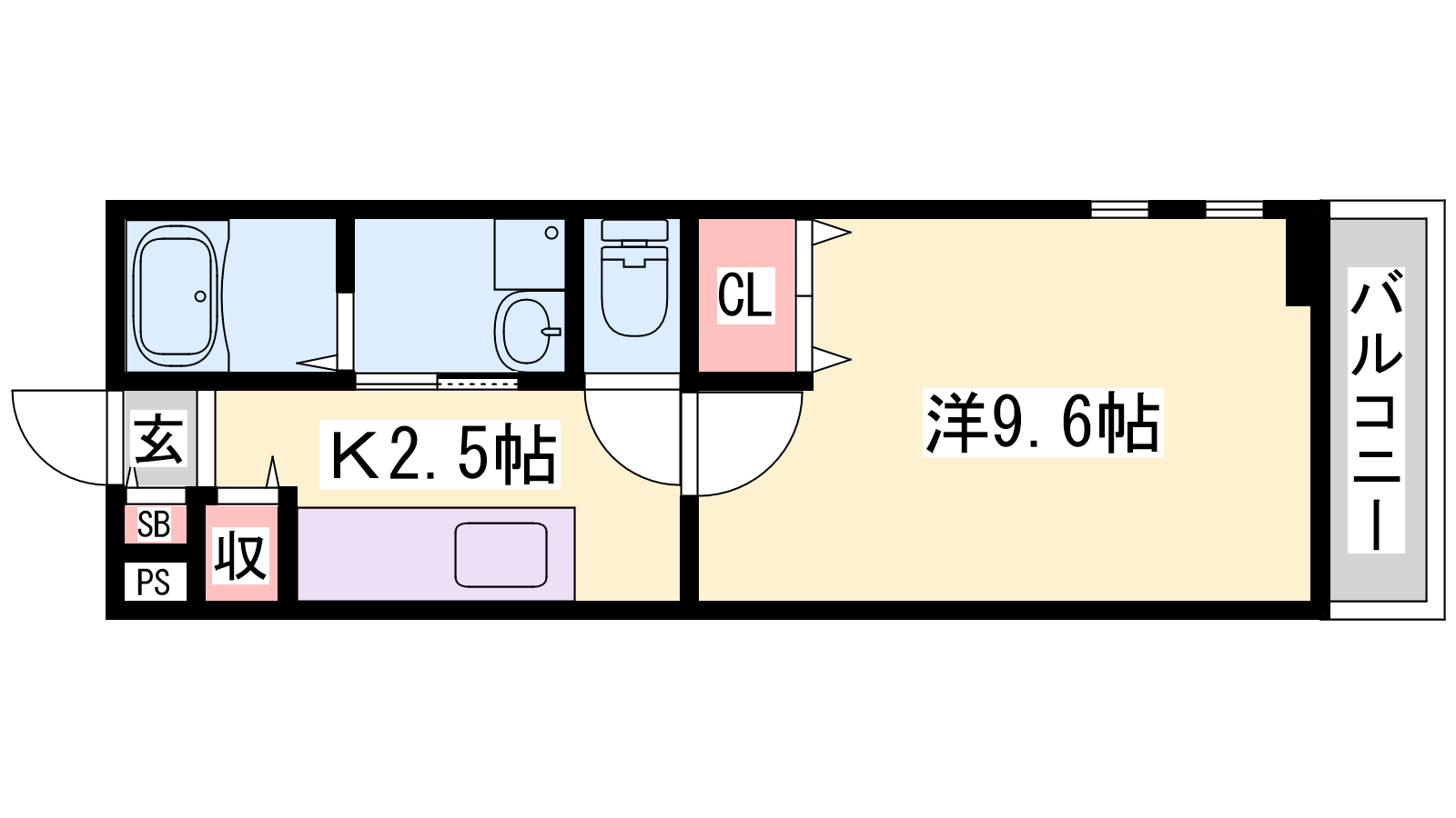 - K2.5帖、洋室9.6帖