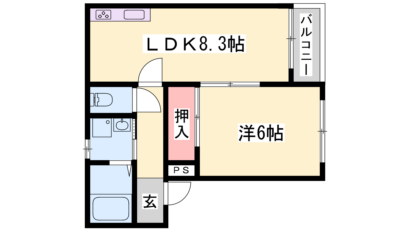 - LDK8.3帖、洋室6帖