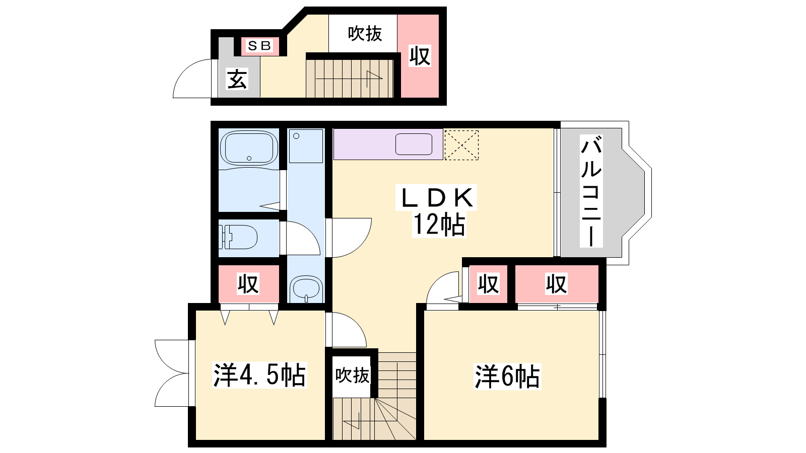 - LDK12帖、洋室6帖、洋室4.5帖