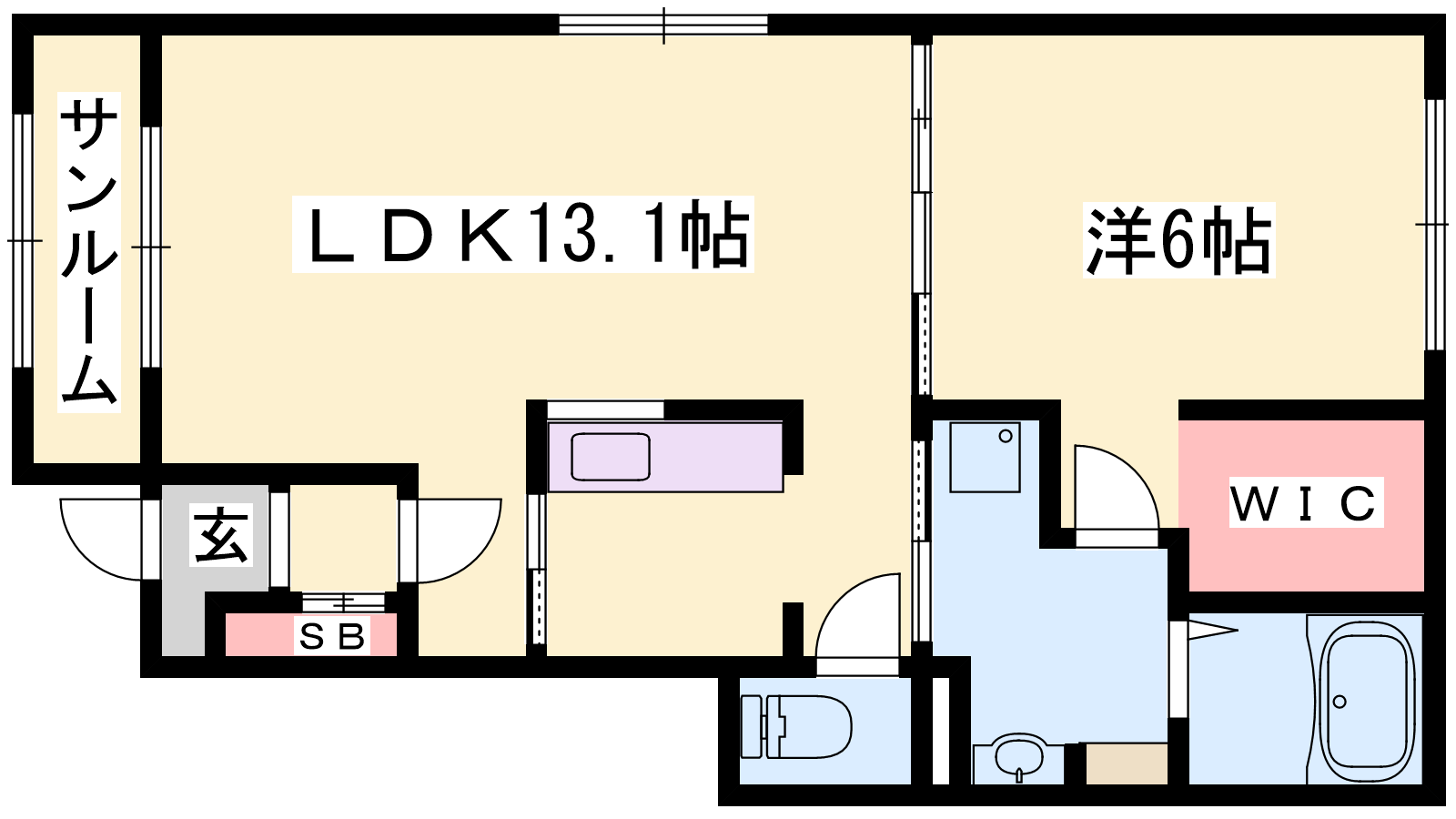 - LDK13.1帖、洋室6帖