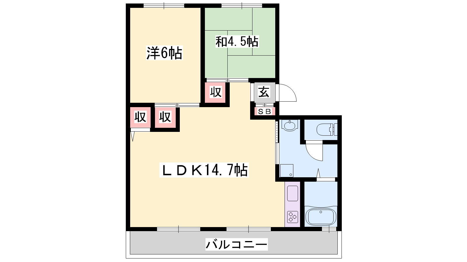 - LDK14.7帖、洋室6帖、和室4.5帖