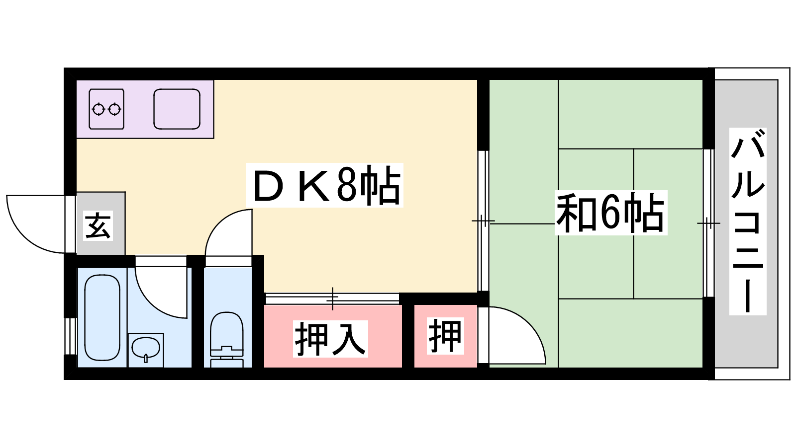 - LDK8帖、和室6帖